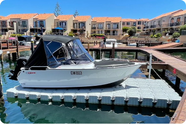 Our modular floating docks are designed for maximum versatility, with options to fit any boat size and configuration, including: Jet Skis, Double Jet Skis, Tinny, Boat, Commercial vessel and more.
